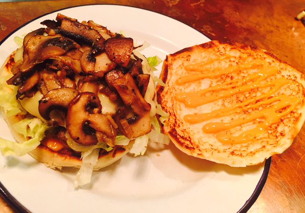 The Fun Guy. Double patty, Emmental, garlic ‘shrooms, pickles, lettuce. #onlygotafew https://t.co/TTK84UMbid